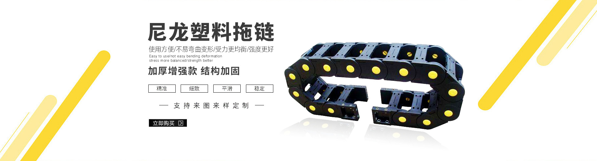 熱門關鍵詞: 雙排拖鏈, H20黃點加強型尼龍拖鏈, H25黃點加強型尼龍拖鏈, 柔性風琴式防護罩, TL125型鋼制拖鏈,